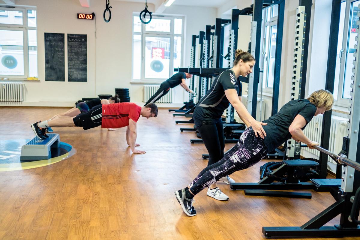 Einer unserer Coaches leitet alle Übungen an und kontrolliert die korrekte Ausführung. Eine saubere Technik beugt Verletzungen vor und sorgt dafür, dass du maximal effektiv Kraft, Stabilität, Beweglichkeit und Ausdauer verbesserst.